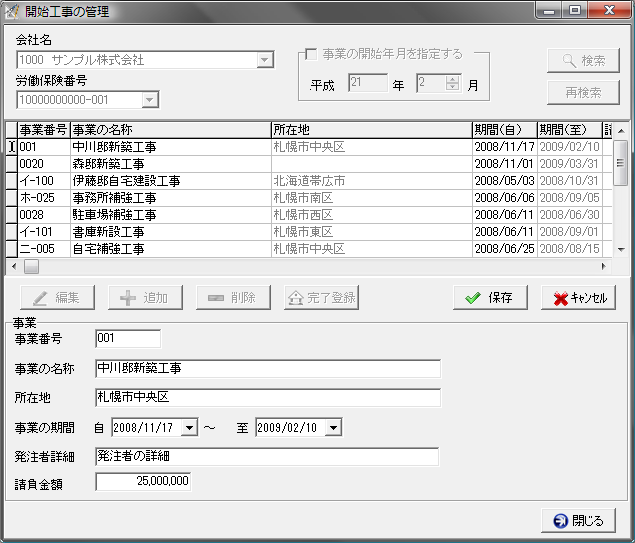 また、登録した有期事業は完了登録をすることで、報告書・総括表に集計できるようになります。